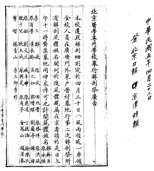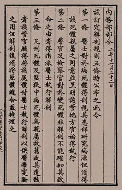 1914年4月,内务部公布解剖规则施行细则,中国第一部完整的解剖法案诞生。