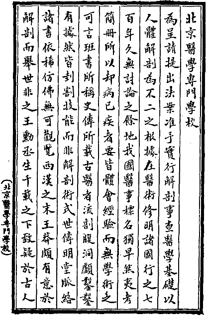 基于对西医解剖学基础性和重要性的深刻认识和教学的迫切需要,汤尔和在就任北京医学专门学校校长一个月之后,便呈文教育部请求公布《解剖条例》。