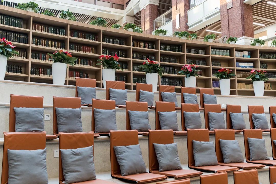 淑范医学图书馆的馆内以“书山”为设计立意,通过空间改造,多方位完善了图书馆功能。全馆共分为地上四层和地下三层,馆舍面积从10200平米增加到13000平米;阅览座位从600席增加到1200余席。
