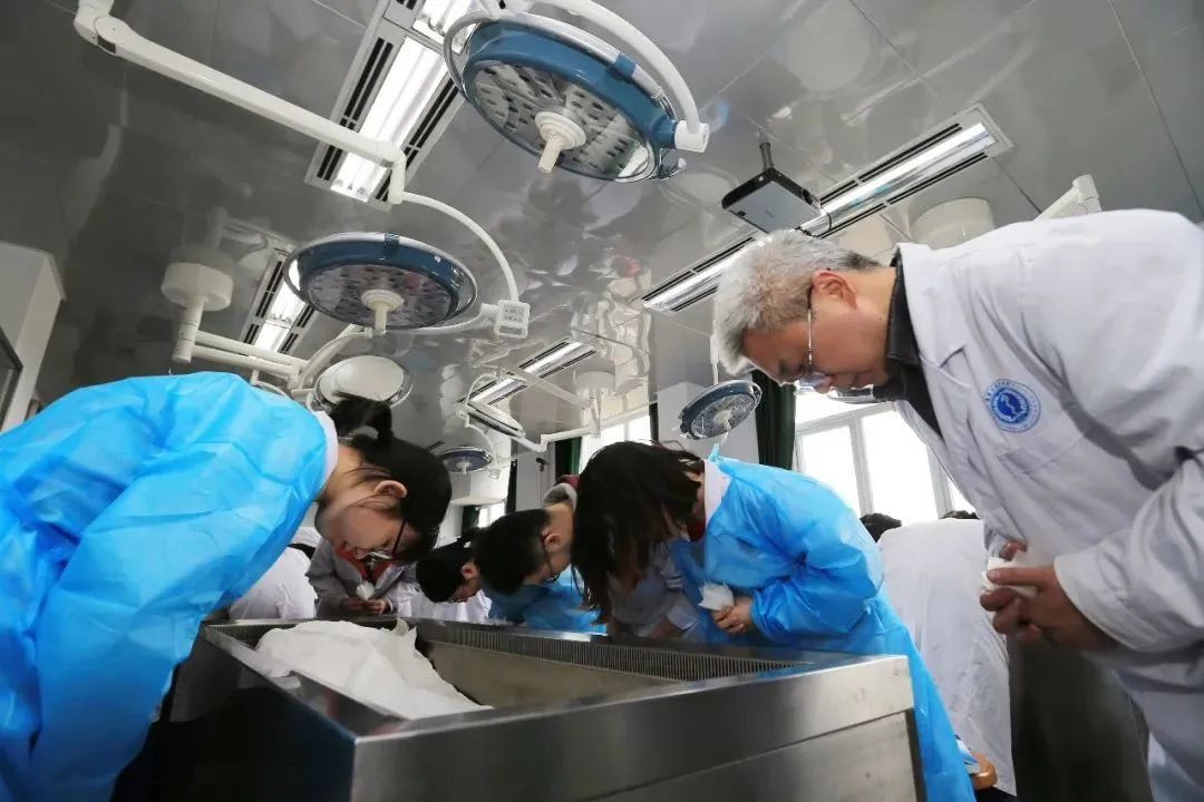 作为医学教育的基础课、医学生接触的第一门专业课,“人体解剖学”特别强调对思政元素的挖掘。解剖课上,张卫光教授带领学生向大体老师鞠躬致敬。