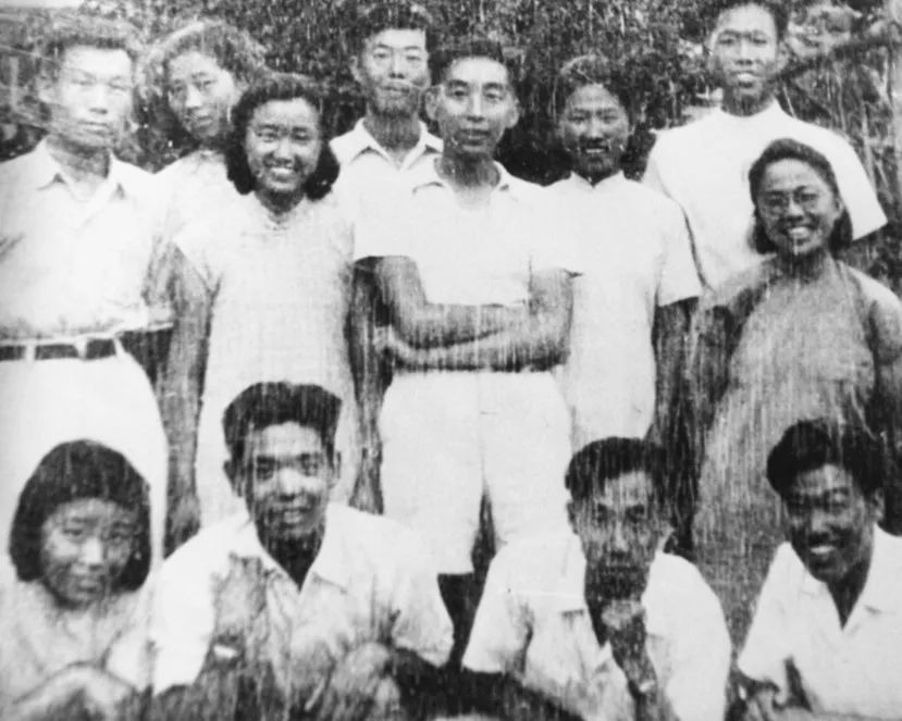 彭瑞骢(前排右一)等北医进步师生在北京西郊什坊院