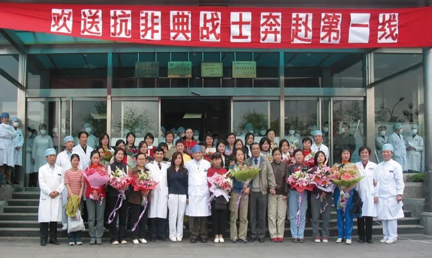1950年,抗美援朝医疗队出发前在北大医院石头楼前合影