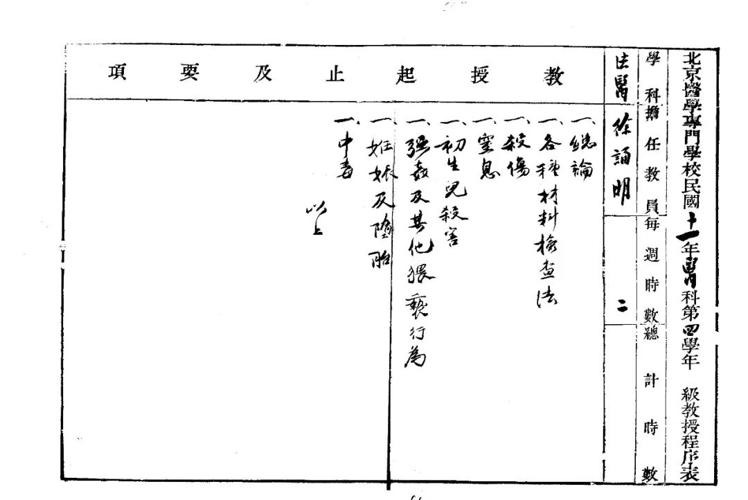 1920年代,徐诵明教授也曾开设本课。图为其《教授程序表》。