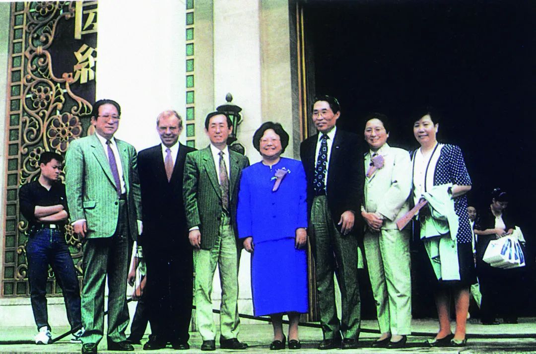张震康(右一)迎接时任国务院副总理吴仪进入世界牙科联盟开幕式会场
