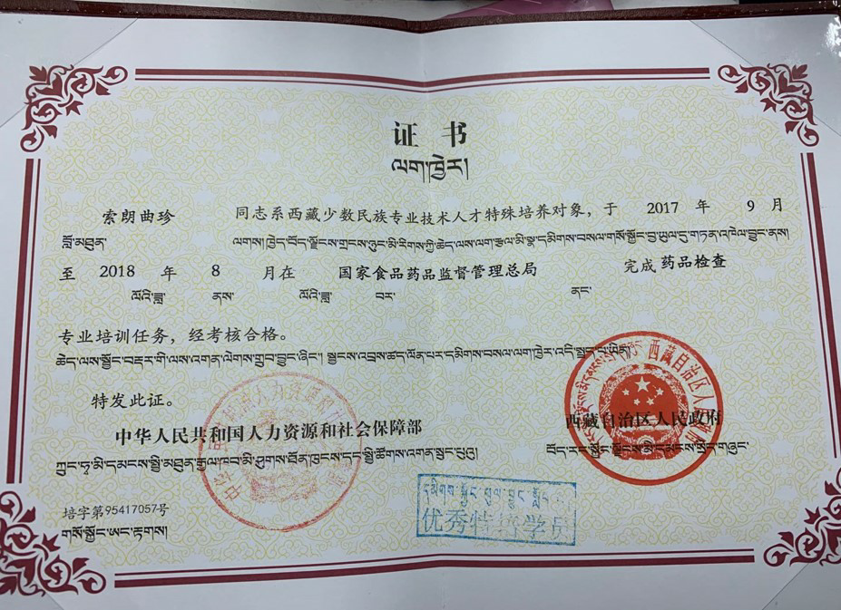 在谈起自己的工作和未来的计划时,索朗曲珍骄傲地说道:“我想作为国家的药品检查员,到更多的地方企业去学习和检查,再把做得比较好的方法带回来分享给西藏的药品生产企业,不断促进藏药传承创新发展,造福更多的老百姓。”