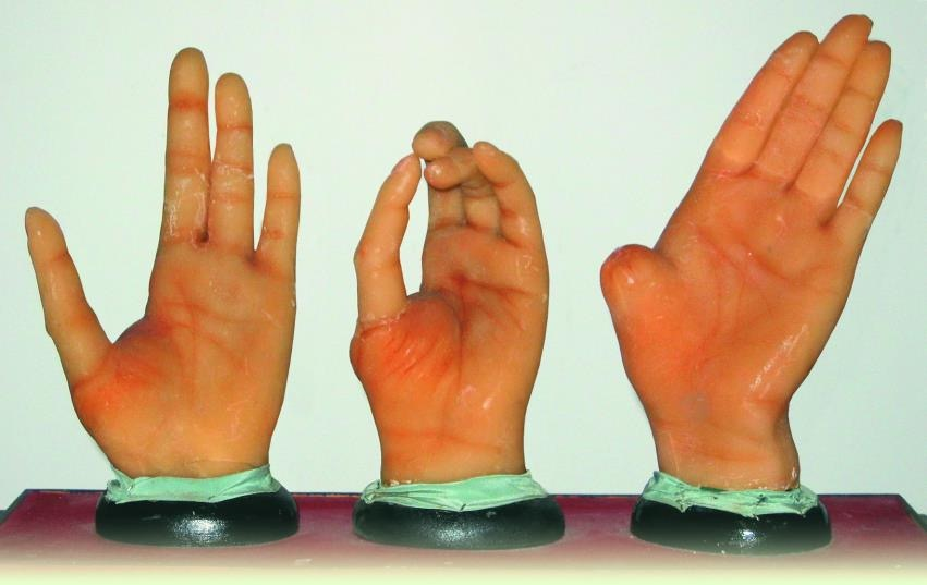 当年制备的示指转位拇指再造术的术前和术后蜡质模型
