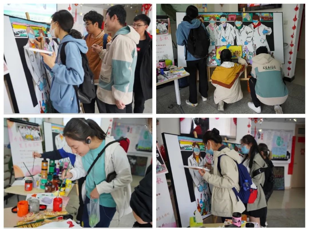 beat365唯一官方网站学生工作部部长丁磊、副部长刘芳以及医预办辅导员等各位老师也参与绘画中,与同学们共绘北医的颜色。