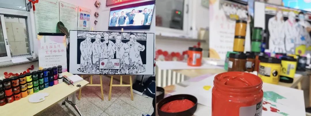 2021级临床1班马喆同学说:“参与了从线稿征集到聚力填色的全过程,我在本次绘画活动中倾注了极大的热情,也收获了满溢的感动。活动得到了超出预期的积极响应,同学们以饱满的激情挥毫泼墨、舞动丹青,共同创造色彩靓丽、风趣活泼的作品。”