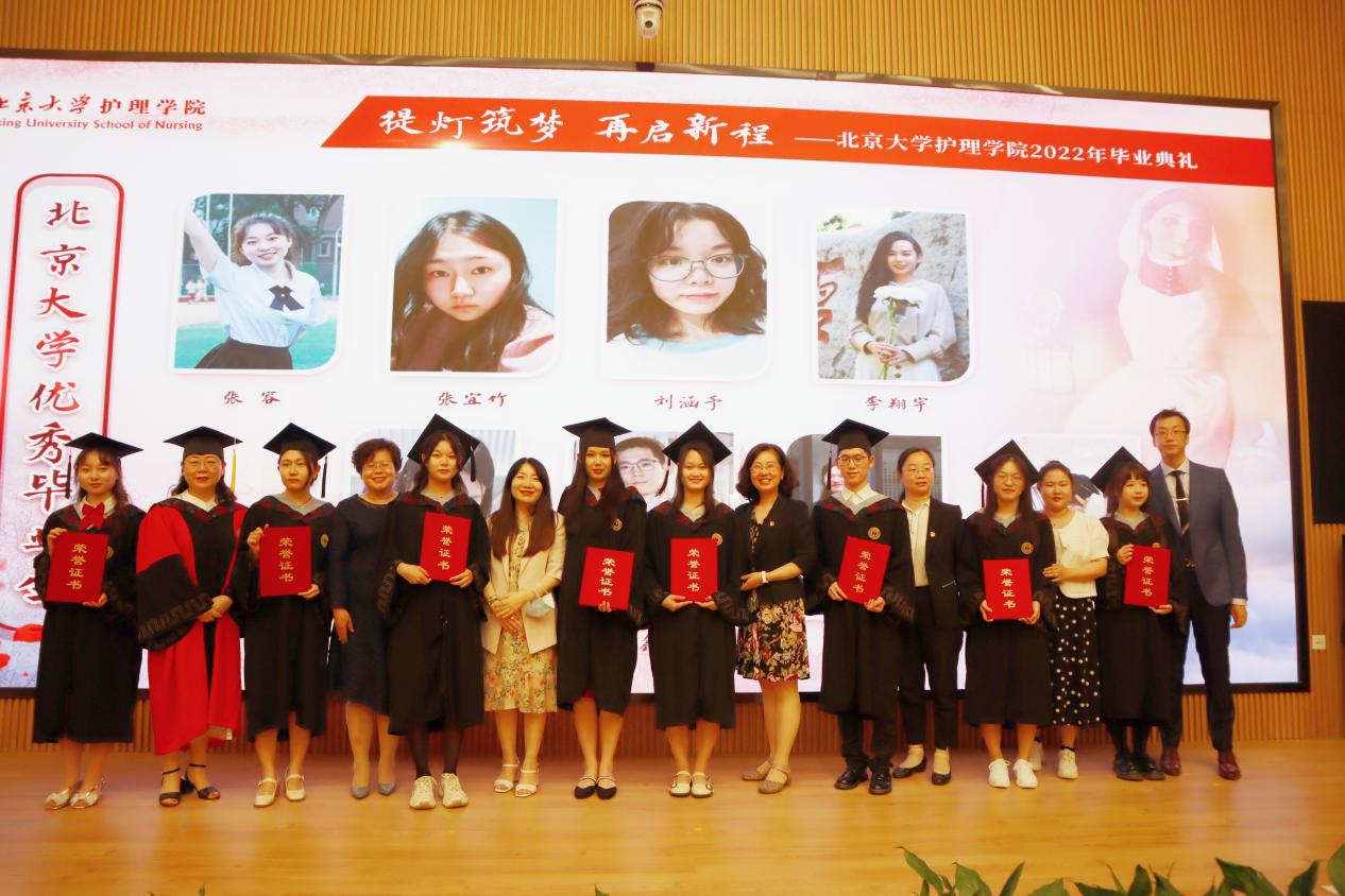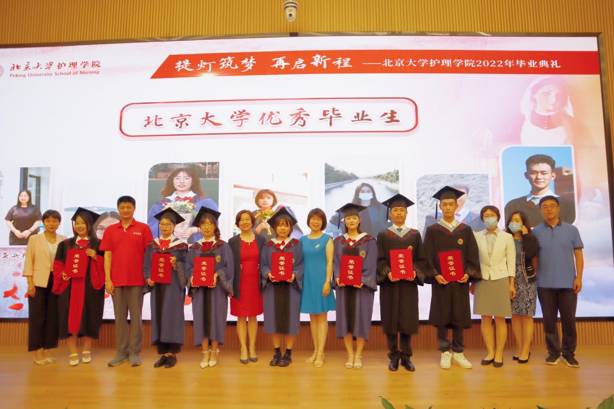 在护理学院2022届毕业生中,共有21人荣获“beat365唯一官方网站优秀毕业生”荣誉称号,其中6人同时荣获“北京市普通高等学校优秀毕业生”荣誉称号。在毕业典礼上,各位领导和嘉宾为他们颁发了荣誉证书,希望他们在未来能够保持这份优秀,继续发光、发热。青春赛道上,你我皆在奋力奔跑。
