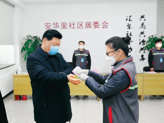 2月10日,中共中央总书记、国家主席、中央军委主席习近平在北京调研指导新冠肺炎疫情防控工作。这是习近平在朝阳区安贞街道安华里社区,了解基层一线疫情联防联控情况。新华社记者 庞兴雷 摄