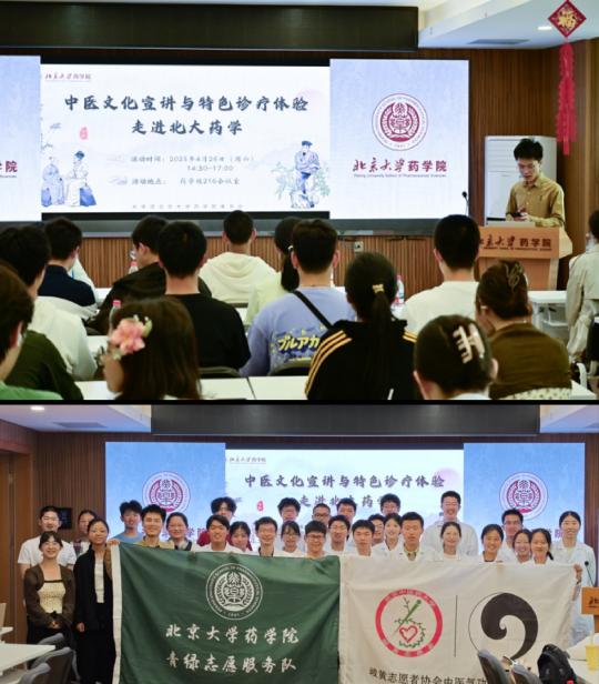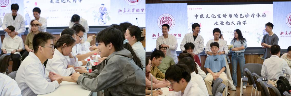 习近平总书记强调“中医药是中国古代科学的瑰宝,也是打开中华文明宝库的钥匙”。为贯彻落实习近平总书记关于中医药工作的重要论述,积极响应建设北大药学高质量学科,促进中医药传承创新发展,药学院积极与兄弟院校搭建沟通桥梁,组织和开展中医药文化宣讲和交流活动。4月26日,药学院联合北京中医药大学中医气功协会开展“桃李共荣话青绿”中医文化宣讲和“手耳推”诊疗体验。同学们不仅体验到了中医“手耳推”的独特诊疗方式,了解了养生保健知识,更切身感受到中医药文化所具有的独特魅力,增强了文化自信。