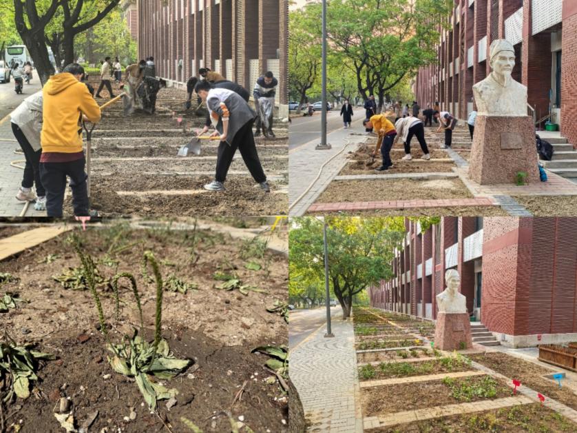 为扩大育人覆盖面,本年度“青绿药圃”采用“责任承包制”,将不同区域内药用植物的播种和培育任务分配给2023级的四个本科班级。在张英涛老师的指导下,同学们设计并选择了适于作为绿化道景观的药用植物,翻土、播种、浇水、施肥,挥洒汗水打造属于药学人的一道校园新绿。