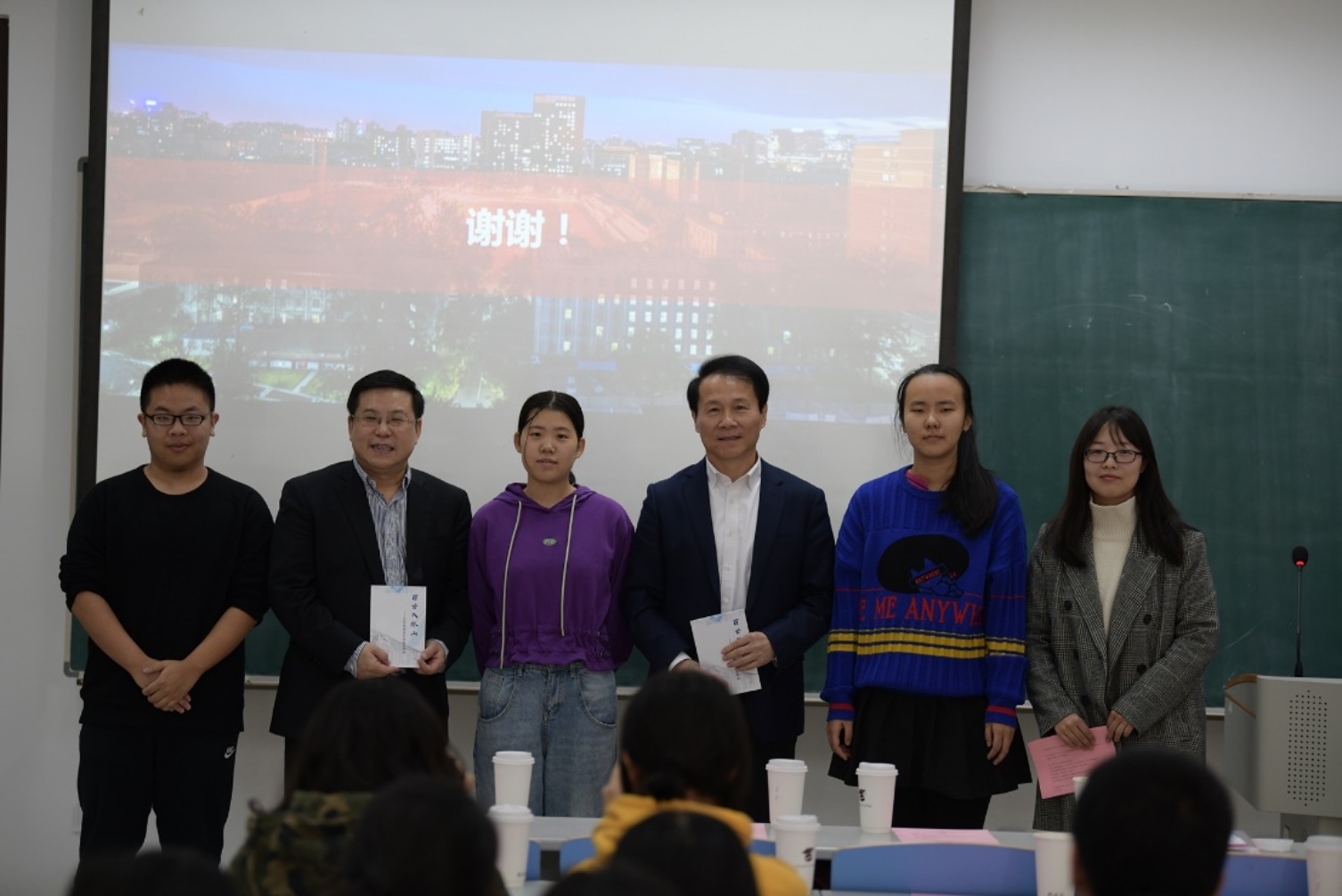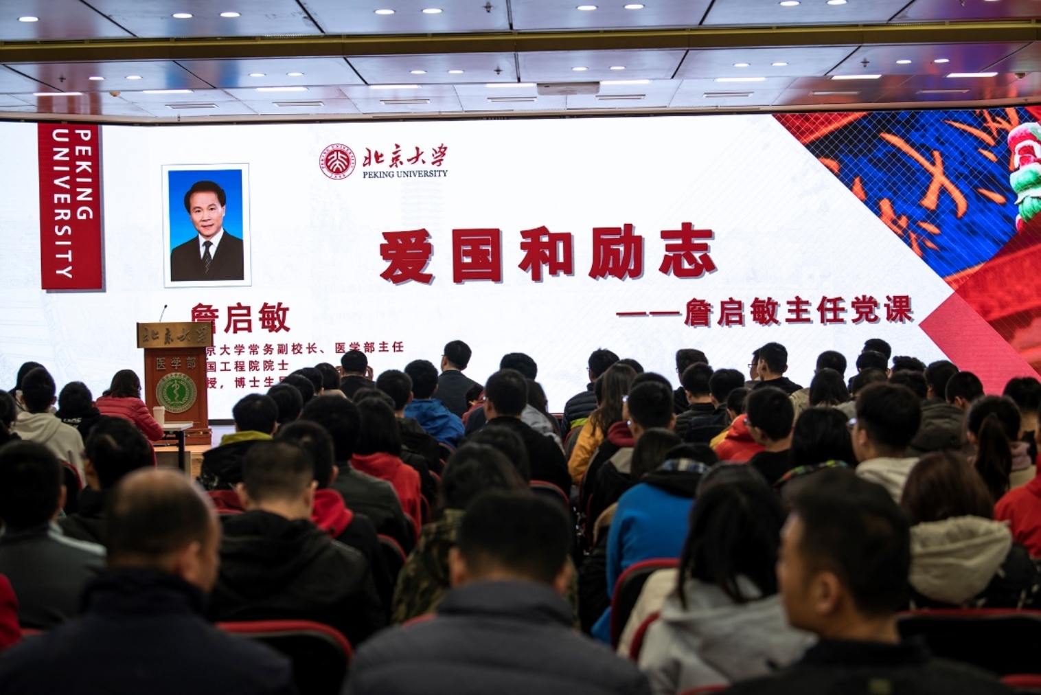 见面会结束后,詹启敏在逸夫楼二层报告厅为基础医学院学生讲授了“爱国和励志”主题党课。