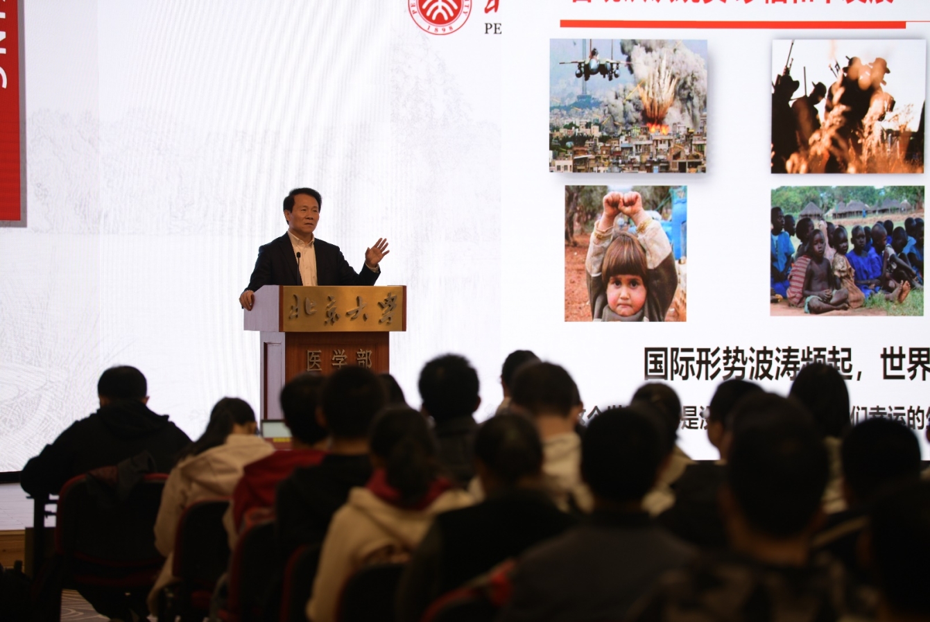 “生逢其时,重任在肩”,詹启敏结合切身经历,为大家展示了党和国家的辉煌发展历史,让每一位同学深切感受到作为中国人的自豪感。他指出,国家的健康事业和中国梦紧密相连,健康事业蓬勃发展的背后是经济实力的崛起、是科技的进步。他希望同学们作为新时代中国特色社会主义下成长的青年一代,既不可忘却屈辱苦难的历史,更要确立强大的精神信念,将中华民族伟大复兴的使命融入血肉,担当起“国家的未来和民族的希望”之重任。