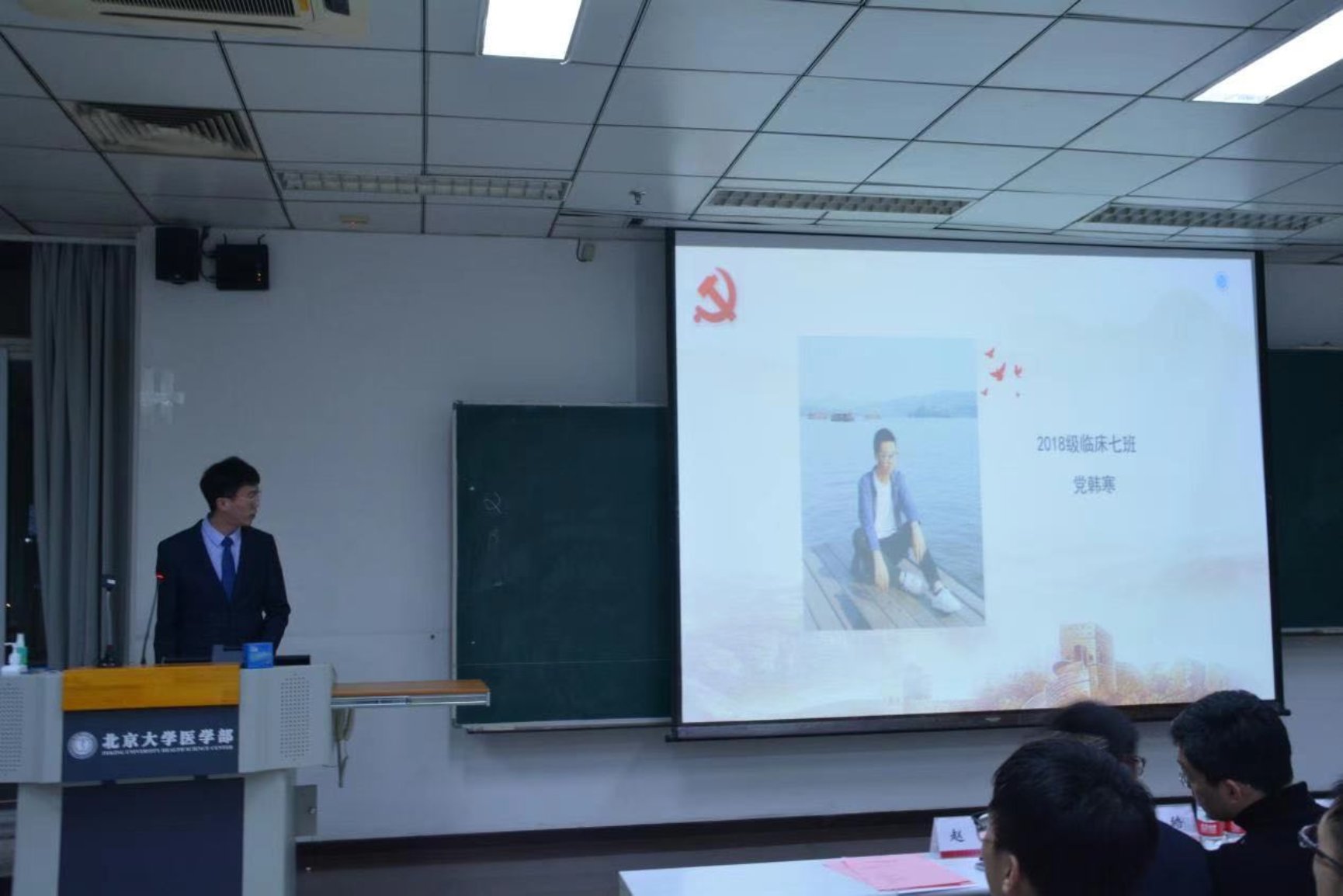 18级临床七班的党韩寒同学作为学员代表发言。他讲述了自己在本期培训班的学习收获,通过理论学习和实践学习,对党的历史进程、党的理论等方面有了更深入的理解。他表示今后将进一步加强理论学习,提高专业知识水平,早日练就过硬本领,承担起党和国家赋予青年的时代使命。最后他代表本期入党积极分子培训班的所有同学对培训班的负责老师和各位辅导员表达了衷心感谢。