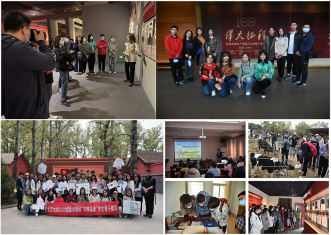 在追寻红色地标中坚定理想信念。基础医学院组织学生前往北京香山公园革命纪念馆、北京万安公墓参观学习;药学院组织参观中国人民抗日战争纪念馆;公共卫生学院组织学生参观宋庆龄故居;第一临床医学院走进中山公园来今雨轩红色教育基地、北大红楼和鲁迅博物馆参观实践;第三临床医学院组织“觉醒青年”暑期实践队赴中国人民抗日战争纪念馆和卢沟桥进行党史学习教育实践活动;口腔医学院组织参观白乙己烈士纪念馆;第四临床医学院组织了宋庆龄故居、鲁迅博物馆(新文化运动纪念馆)参观活动;第九临床医学院组织参观鲁迅纪念馆、香山纪念馆和西山无名英雄纪念广场;医学预科组织全体医学新生开展“漫溯百年”党史学习教育,探访具有革命意义的共产党活动旧址,深入学习百年党史,缅怀作出突出贡献的共产党人。